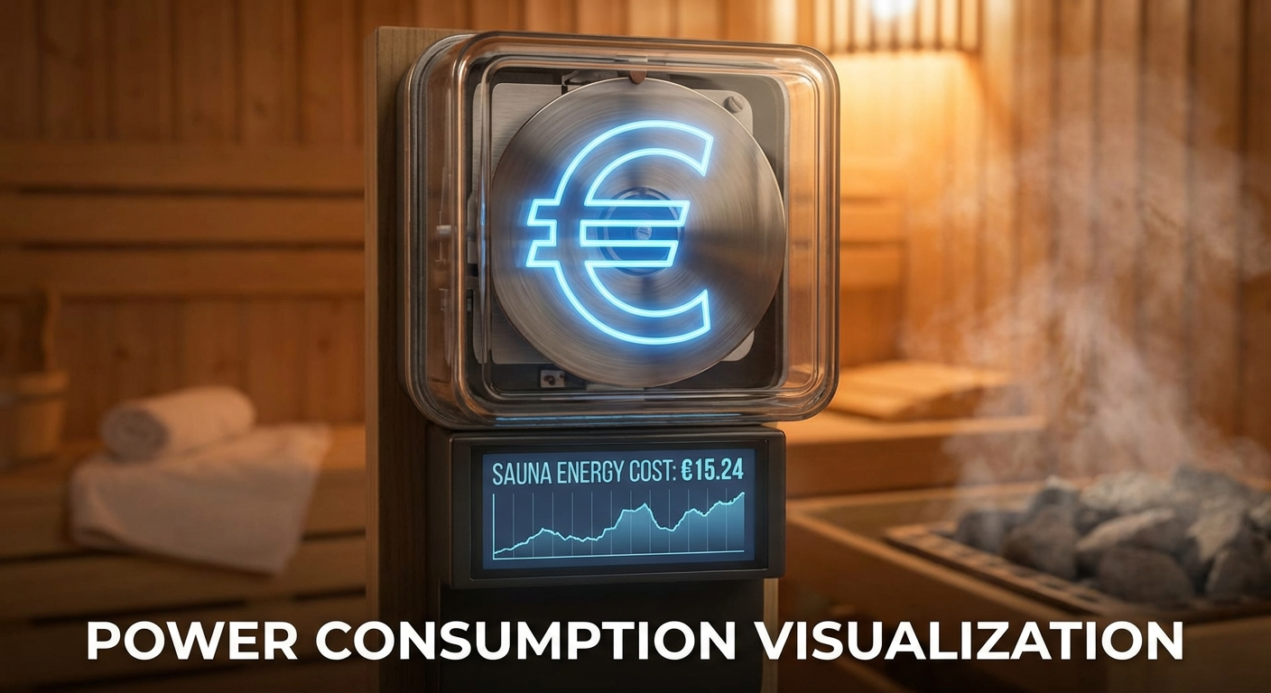 Der Ofen läuft auf Volllast, um die Sauna von Außentemperatur auf 80-100°C zu bringen. Das ist die stromintensivste Phase. Ein 6 kW Ofen zieht in dieser Zeit 3-6 kWh.