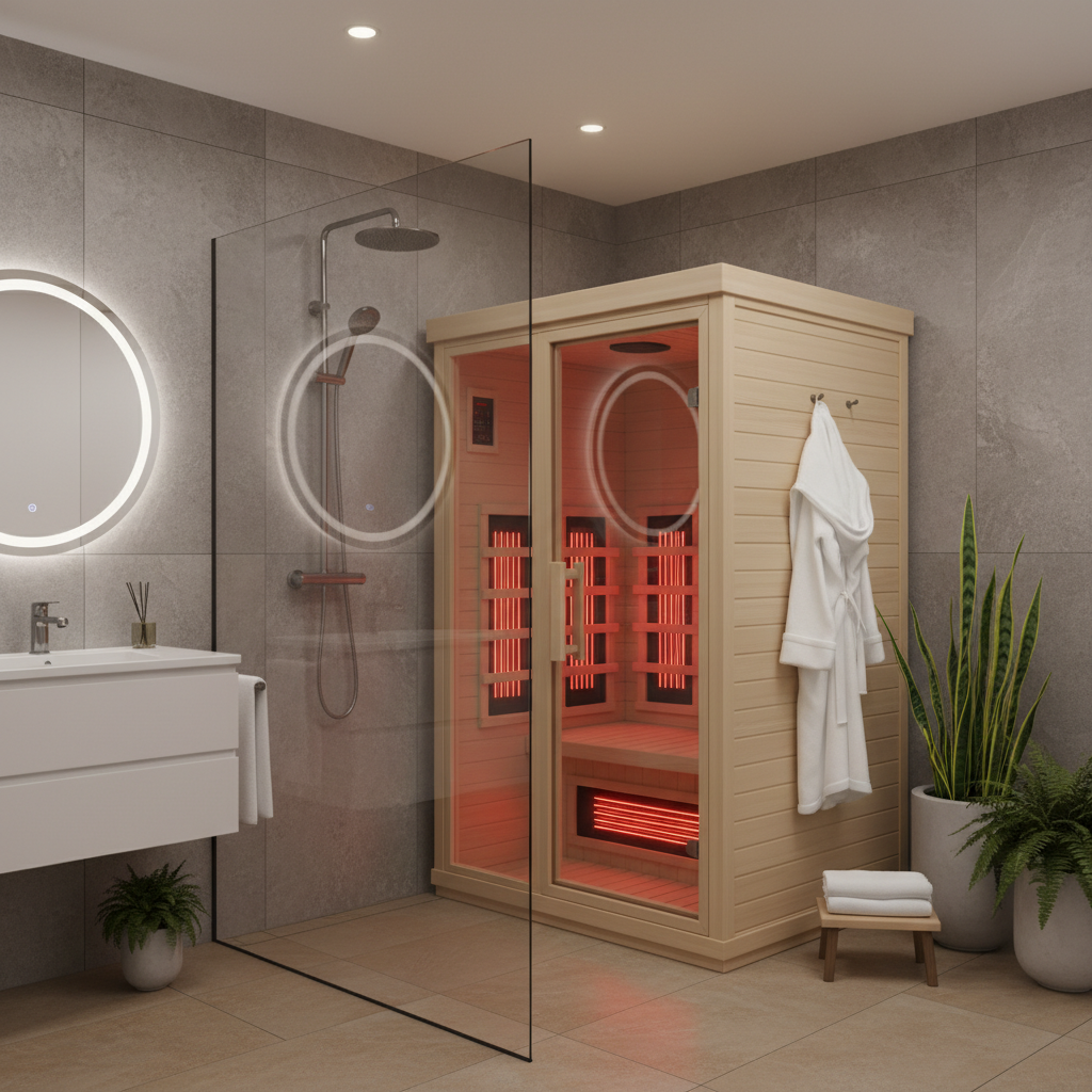 Einer der größten Pluspunkte ist die kompakte Bauweise. Eine Infrarotsauna für 1 Person benötigt in der Regel eine Grundfläche von nur etwa 90x90 cm bis 110x100 cm. Das macht sie ideal für kleinere Wohnungen, Badezimmer, Schlafzimmer oder sogar Home-Office-Räume. Wo eine herkömmliche Sauna oft einen separaten Raum erfordert, fügt sich die Einpersonen-Infrarotsauna unauffällig in bestehende Wohnkonzepte ein. Sie lässt sich leicht montieren und bei Bedarf sogar umziehen, was maximale Flexibilität bedeutet.